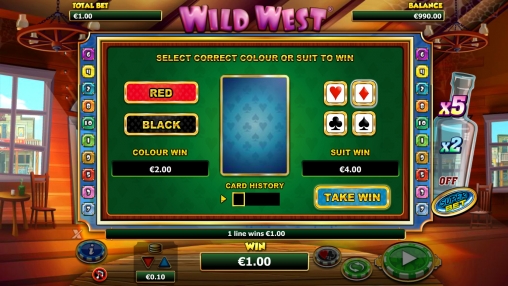 В Wild West есть также риск-игра, в которой наиболее азартные пользователи пытаются увеличить общую выплату, начисленную за раунд. Она выдержана в привычном для данного бренда стиле. Вы можете угадывать цвет или масть карты, чтобы удвоить сумму или же умножить ее в четыре раза. Права на ошибку у вас не будет. В одном подходе разрешается играть до пяти раз подряд.