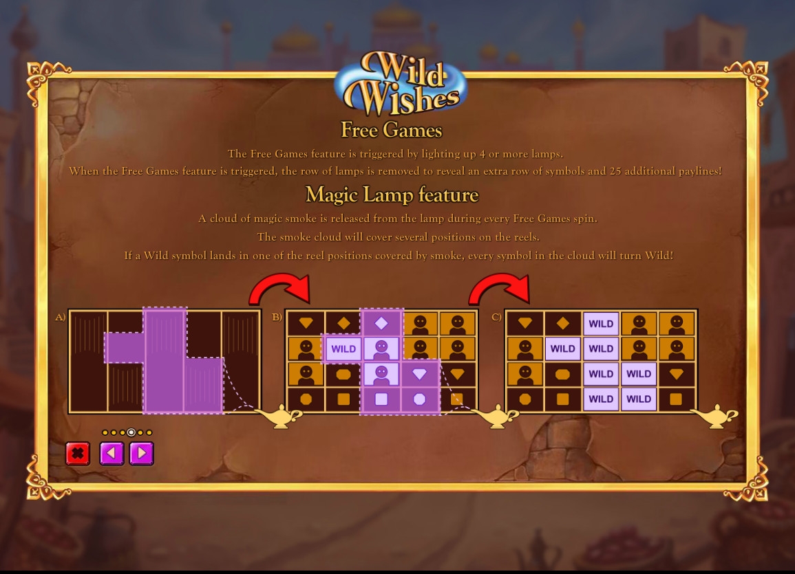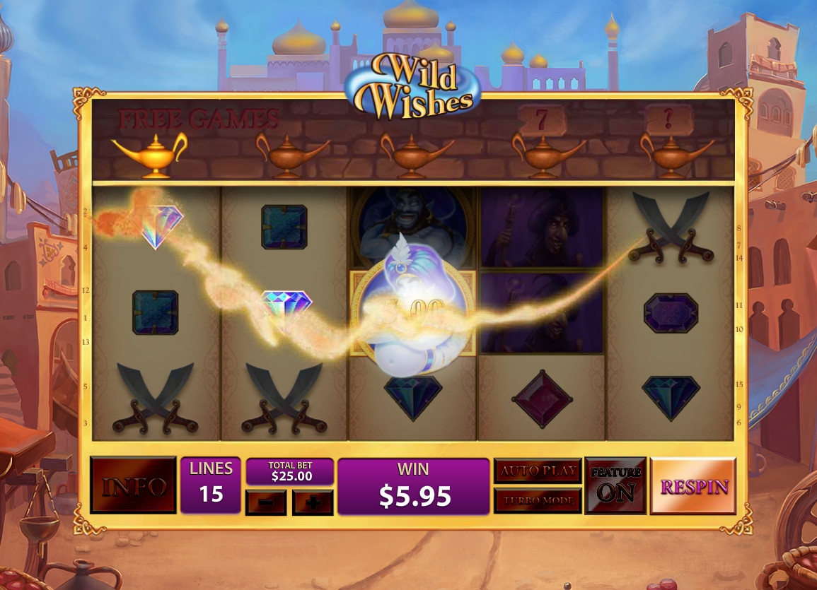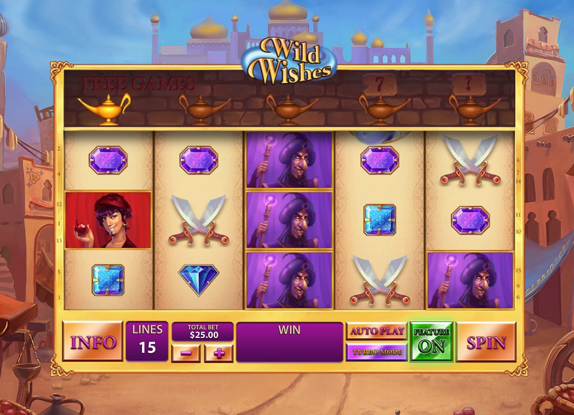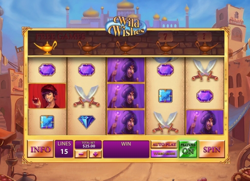 Интересный видео-слот Wild Wishes с необычными возможностями и уникальным дизайном предлагает компания Playtech. Модель имеет базовые и бонусный игровые режимы, сменяющееся количество активных линий и символов на экране, различные призовые опции, а также многое другое, о чем рассказывается в обзоре от Casinoz. Посвящена игра старинным восточным сказкам об Аладдине и джинне из лампы, исполняющем желания.
