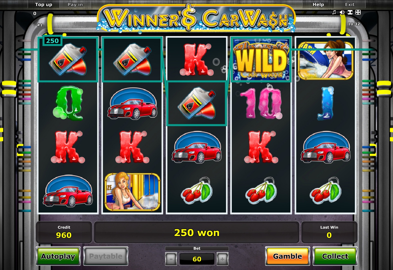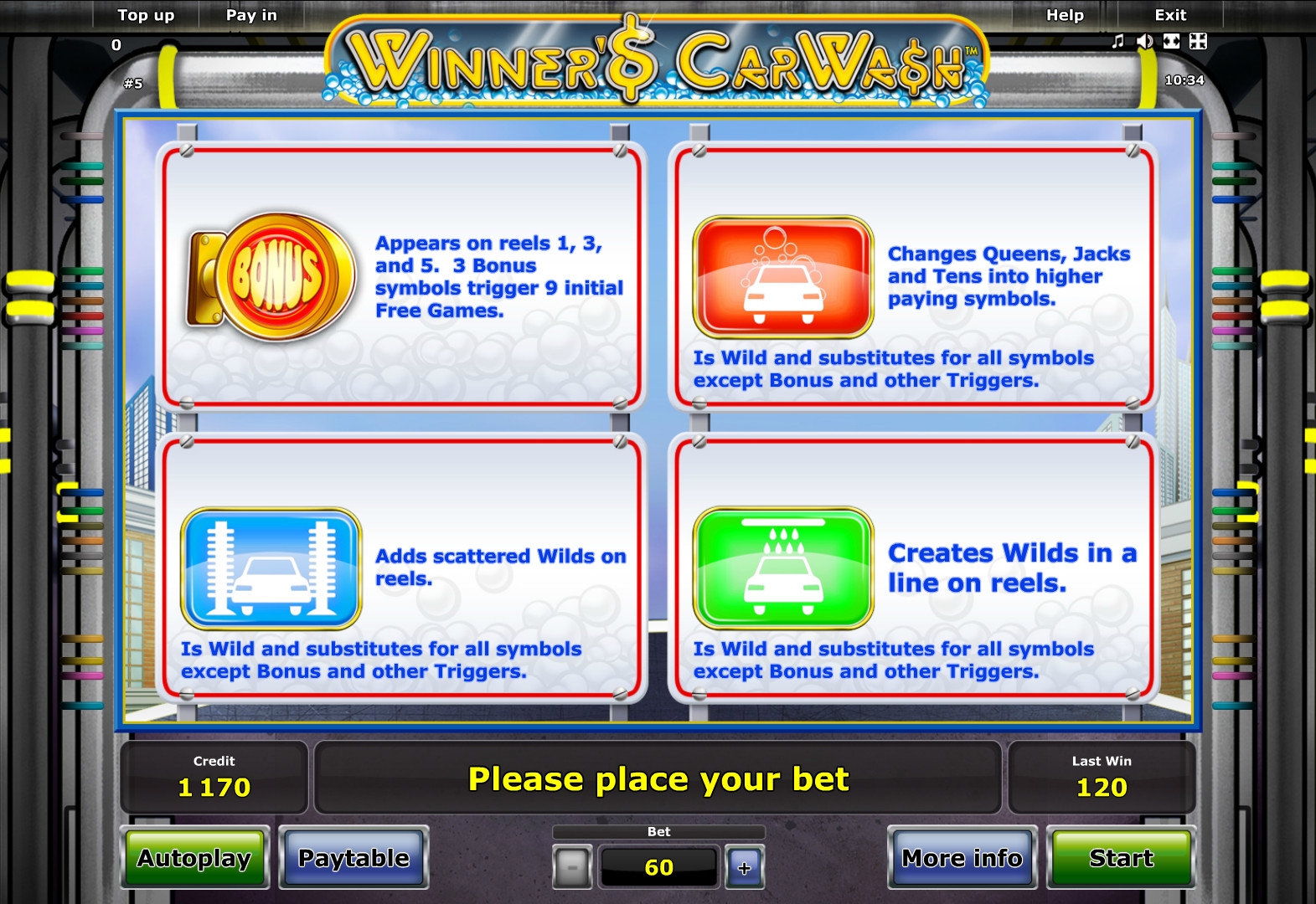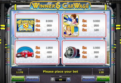 Всем привет. Лучшая игра Winner’s Car Wash (Автомойка для победителя) от широко известной в игровых кругах компани Novomatic. Можно поиграть бесплатно в демо режиме и за реальные деньги