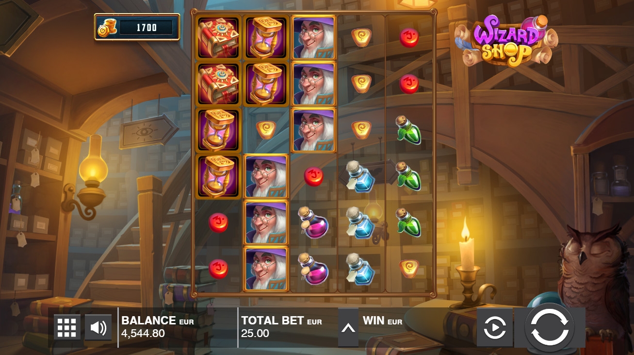 Wizard Shop – игровой автомат с пятью барабанами. В колонках на экране размещаются по шесть картинок (6х5).