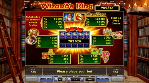 Поклонникам азартных онлайн-игр в жанре фэнтези предлагаем обзор нового игрового онлайн-слота Wizard’s Ring от компании Novomatic. Это впечатляющая модель о великом чародее, в которой стильный дизайн сочетается с эффектными анимационными заставками и увлекательными возможностями. Читайте обзор, подготовленный штатными авторами портала Casinoz, и запускайте аппарат прямо в браузере.