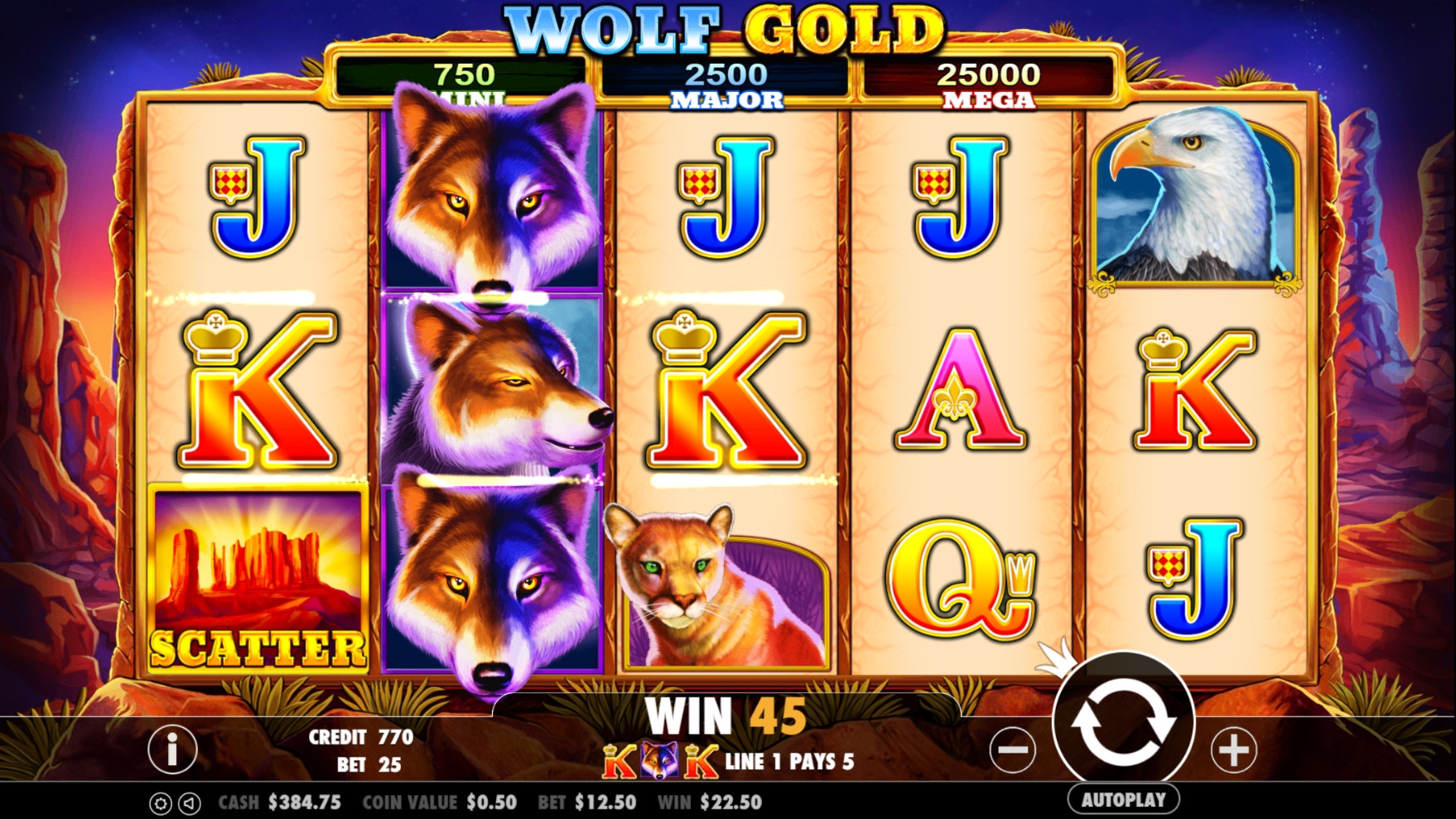 В Wolf Gold есть три джекпота: Mini, Major и Mega. Правила их розыгрыша обсуждались выше.