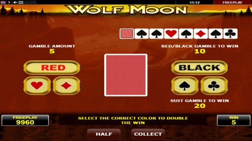 Игра по шансам запускается по вашему желанию. Здесь можно угадывать цвет или масть карты, чтобы увеличить сумму в два или четыре раза соответственно. Права на ошибку нет.