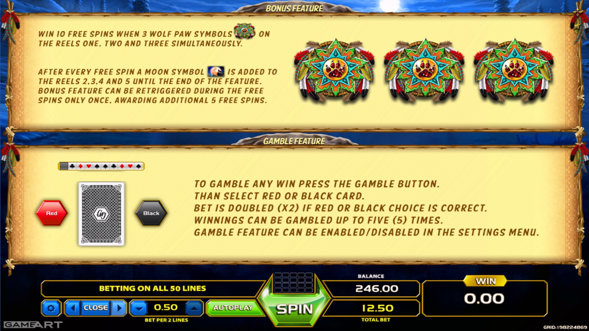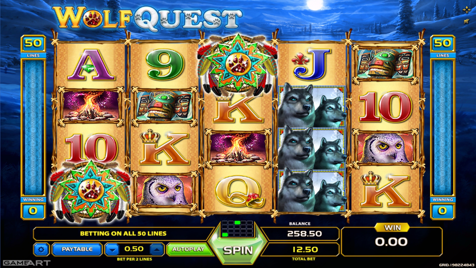 Волки, орел, сова, костер, тотемы индейцев, а также номиналы игральных карт от девятки до туза – вот что вы увидите на барабанах игрового автомата.