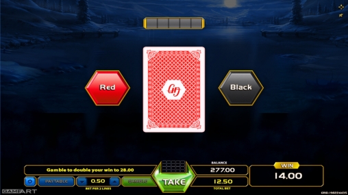 По завершению раунда можно запустить риск-игру по равным шансам. Она стартует на дополнительном экране. Здесь нужно угадывать цвет закрытой карты. Если вы дадите правильный ответ, выплата удвоится. Иначе вы проиграете ставку. Правилами разрешается действовать подряд несколько раз, пока вы не достигнете лимита, но выйти можно на любом этапе.