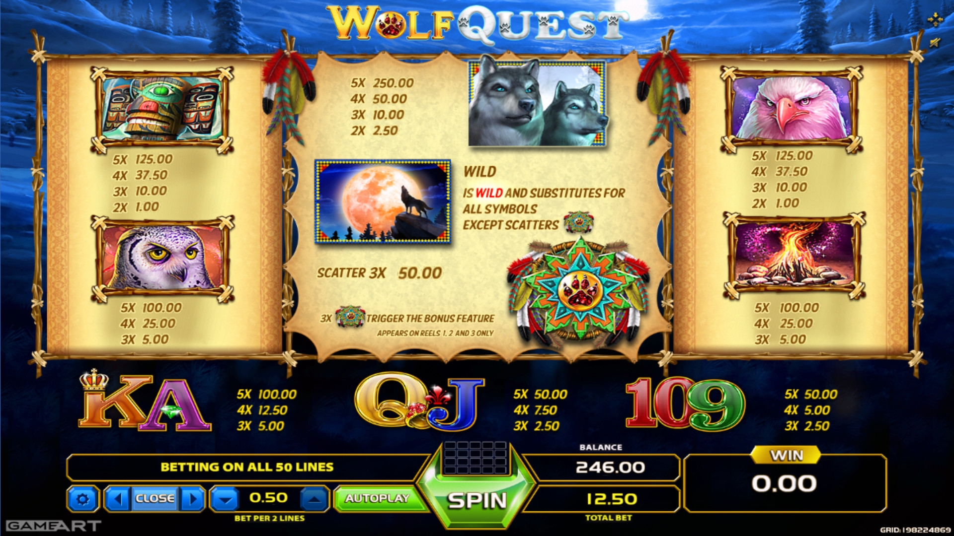 В Wolf Quest особые функции выполняют символы Wild (силуэт волка, воющего на луну) и Scatter (амулет индейцев). О них подробнее: