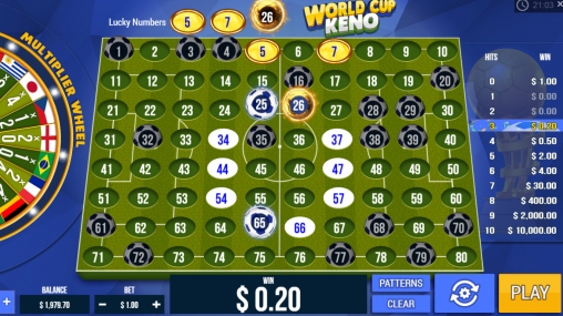 В World Cup Keno нет прогрессивного джекпота PariPlay.