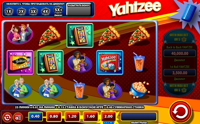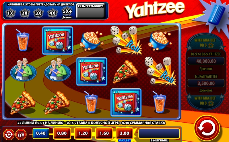 - Roll начинает раунд 4 to a Yahtzee Free Roll Bonus. Для этого пять таких картинок должны оказаться одновременно на экране, расположившись на соседних барабанах.