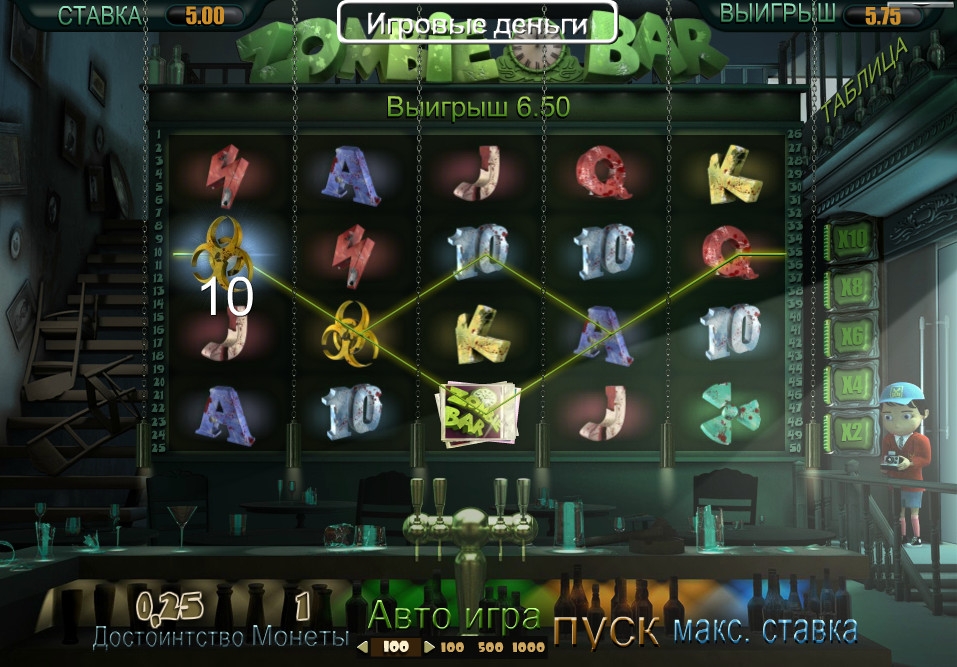 Отныне казино, работающие на платформе SkillOnNet, предлагают клиентам посетить появившийся у них «Бар зомби». Так называется новый бесплатный игровой автомат с трехмерной графикой и многочисленными функциями. Кстати, идея дать такое наименование питейному заведению отнюдь не нова. Если воспользоваться Гуглом или другими поисковыми системами, можно легко найти десяток-другой таких баров, расположенных в разных странах. Но нас больше интересует данная модель, особенности которой описаны в обзоре.