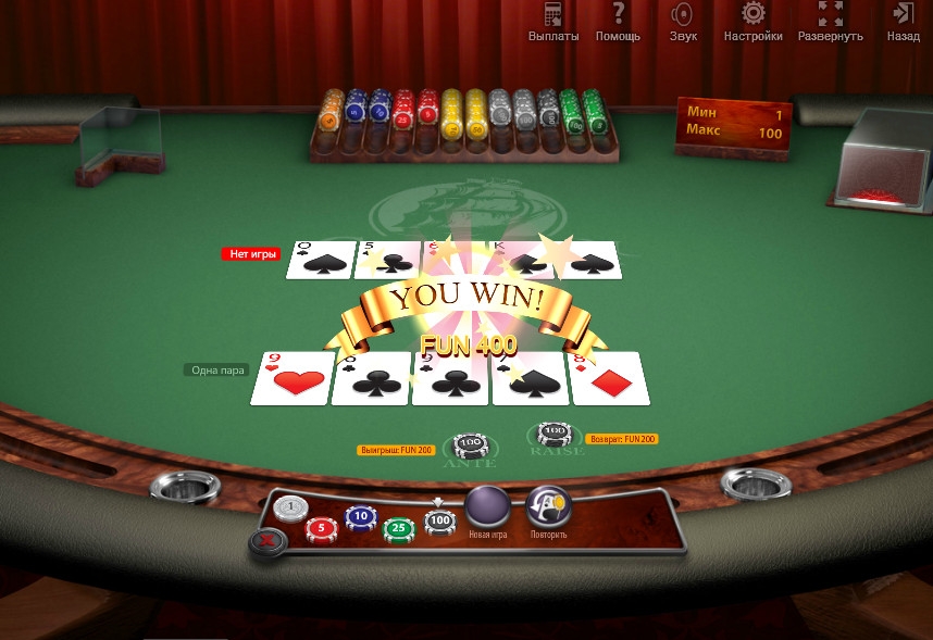 Подробно описывать значение надписей на панели управления не будем, так как покер целиком переведен на русский язык.