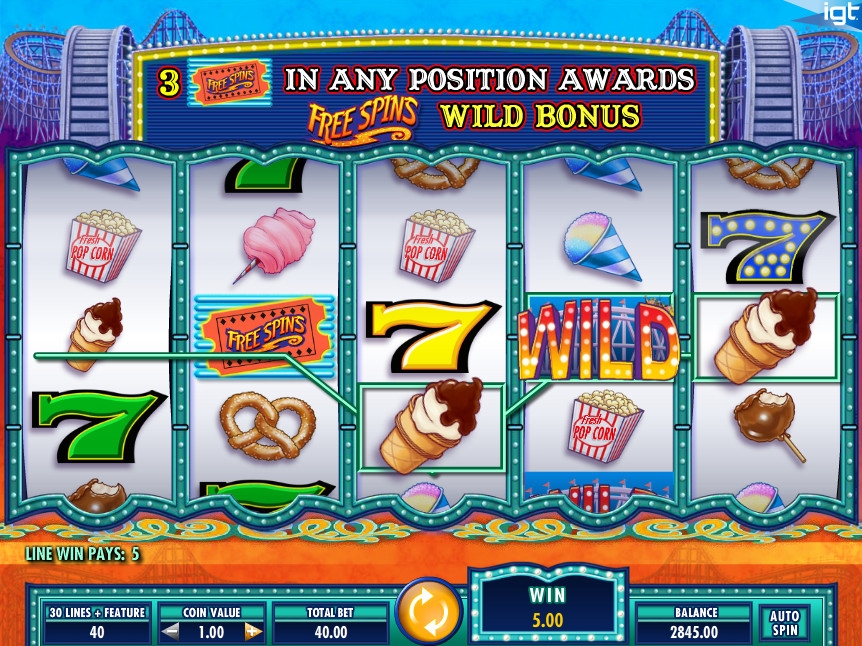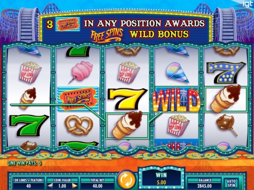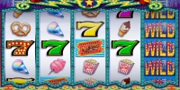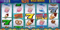 На экране видео-слота появляются разноцветные семерки и всевозможные лакомства, которые традиционно продаются в парках аттракционов: мороженое, попкорн, пончики и так далее. Семерки могут составлять смешанные комбинации, которые оплачиваются по отдельному коэффициенту.