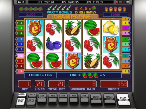 Champagne – пятибарабанный аппарат с двадцать одной линией и пятнадцатью картинками на экране. Вы сможете делать ставки по любому количеству доступных полос, но суммы по всем позициям будут неизменно равными. Диапазон ставок следует уточнять в казино, которому вы отдадите предпочтение.