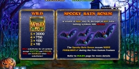 - Spooky Bats Bonus – В любой момент по экрану может пронестись стая летучих мышей, которые превращают случайно выбранные картинки в символы Wild. Во время бесплатных вращений эта функция запускается чаще.