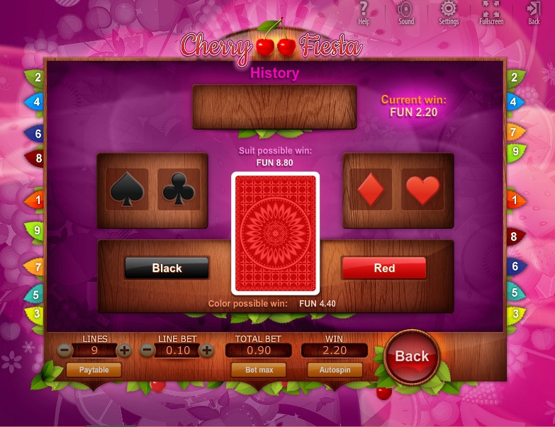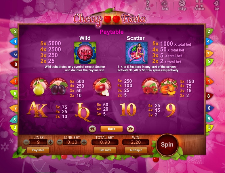 В онлайн видео-слоте «Вишневая фиеста» не разыгрывается прогрессивный джекпот.