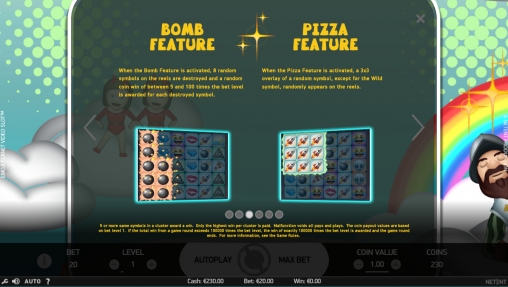 - Bomb – Взрываются восемь картинок, и за каждую присуждается выплата в размере от пяти до ста общих ставок.