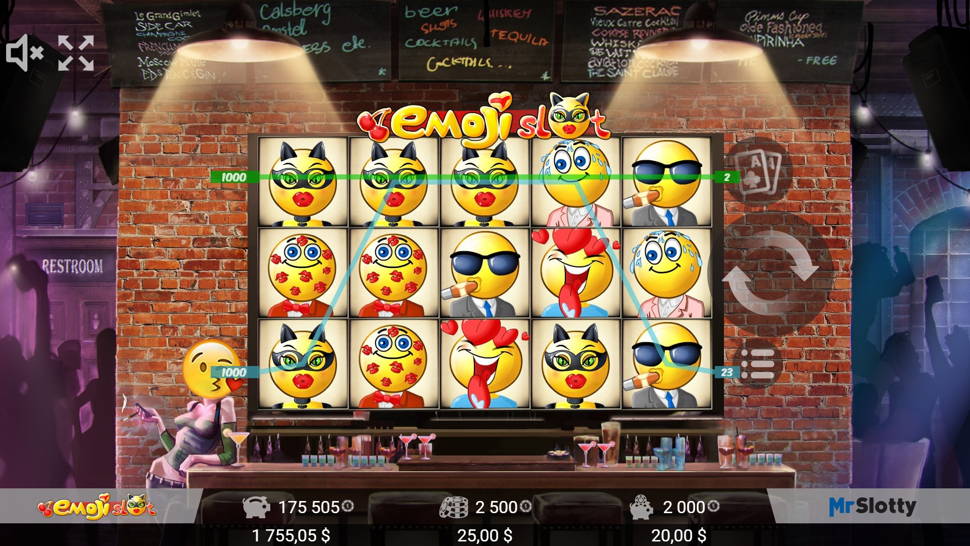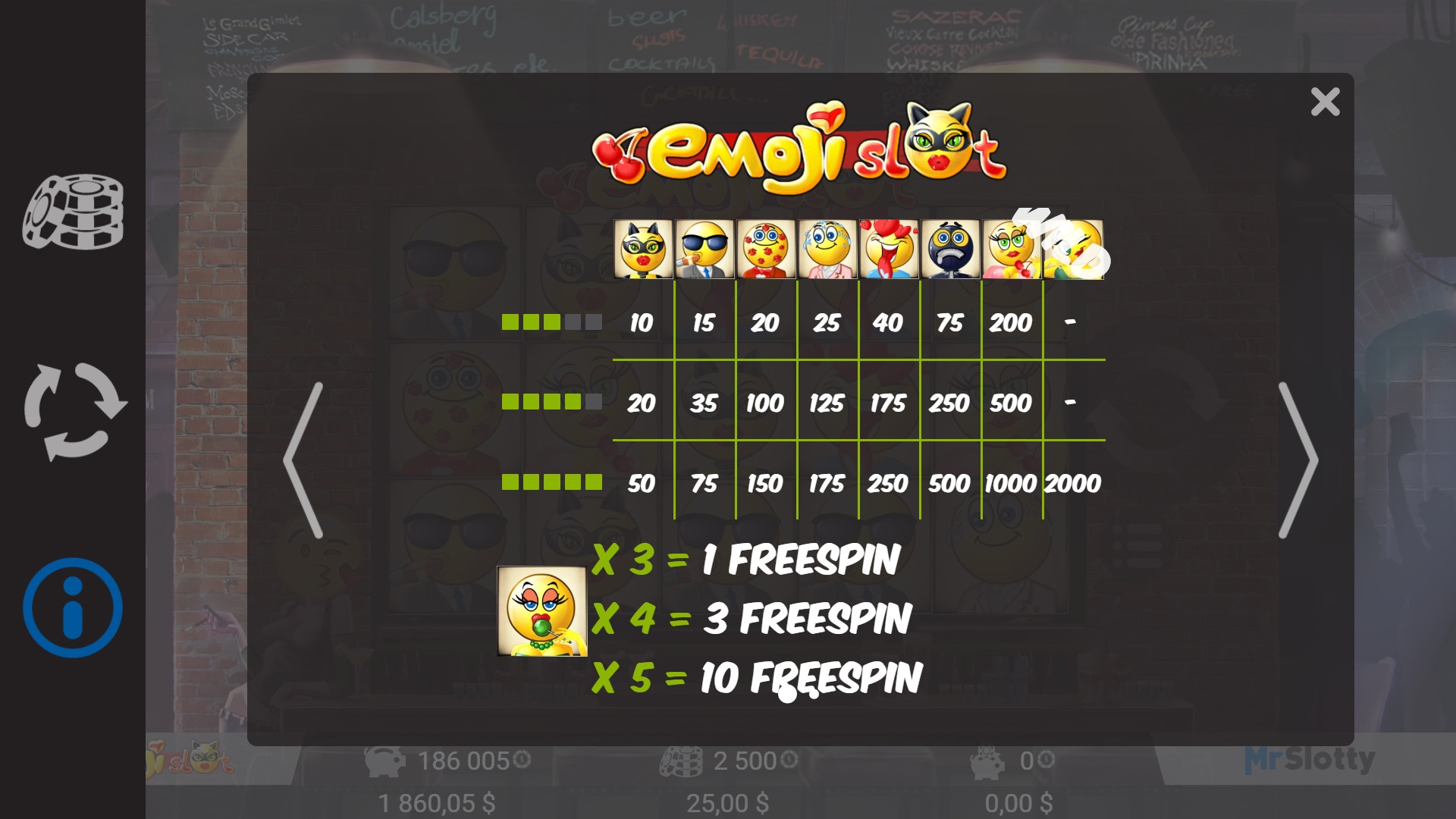 Видео-слот Emoji Slot для игры на деньги и бесплатного тестирования доступен в 777 casino и других заведениях, использующих софт MrSlotty.