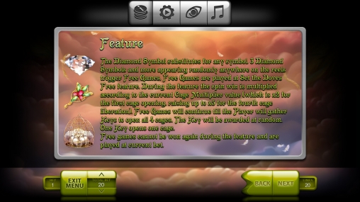 Красивая сказка о феях, которые постоянно появляются на экране, очень красочная, очень понятный и удобный интерфейс с необычным раундом бесплатных  вращений, есть возможность потренироваться бесплатно.