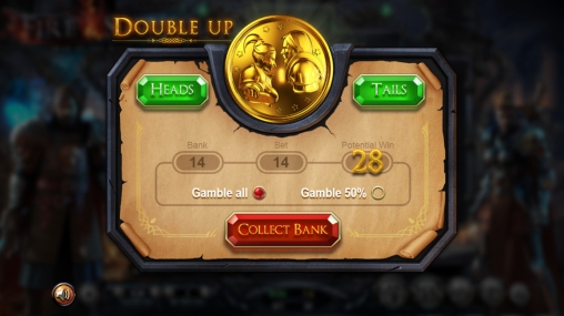 Получив любую сумму, можно начать риск-игру по равным шансам. Она происходит на дополнительном экране в формате «орел или решка». На кон разрешается ставить всю выплату или ее половину. Забирать деньги можно в любой момент.