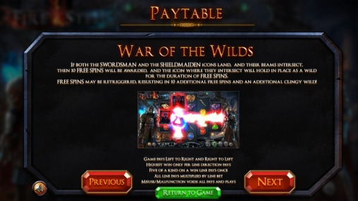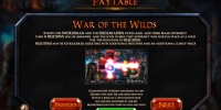 - War of the Wilds – Если на экране одновременно появляются оба героя, а их лучи пересекаются, начинаются десять фри-спинов на деньги казино. Джокер в точке пересечения лучей остается в этой позиции до конца розыгрышей. Бесплатные вращения могут продлеваться.