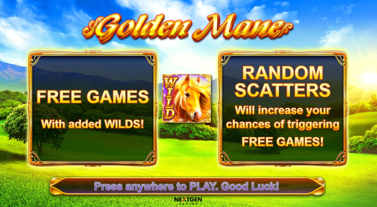 Новый игровой автомат Golden Mane компании NextGen Gaming посвящен благородной красоте лошадей. Вы сможете любоваться великолепными скакунами на фоне бесподобных пейзажей, когда будете собирать оплачиваемые комбинации, участвовать в фри-спинах и претендовать на бонусы. Характеристики модели рассматриваются в обзоре Casinoz.