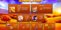Игровой аппарат Golden Mane состоит из пяти барабанов. На экране одновременно выпадают пятнадцать картинок, выстраивающихся в три ряда.