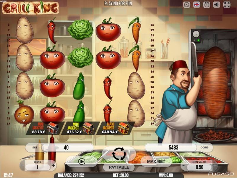 Вы любите восточную уличную еду? Для поклонников шаурмы, фалафеля и прочих вкусных, но опасных вкусностей компания Fugaso выпустила игровой автомат Grill King. Он познакомит вас с турецким поваром, который лихо размахивает огромным ножом, нарезая мясо и овощи. Из обзора вы узнаете, чем он сможет вас удивить в ходе игры.