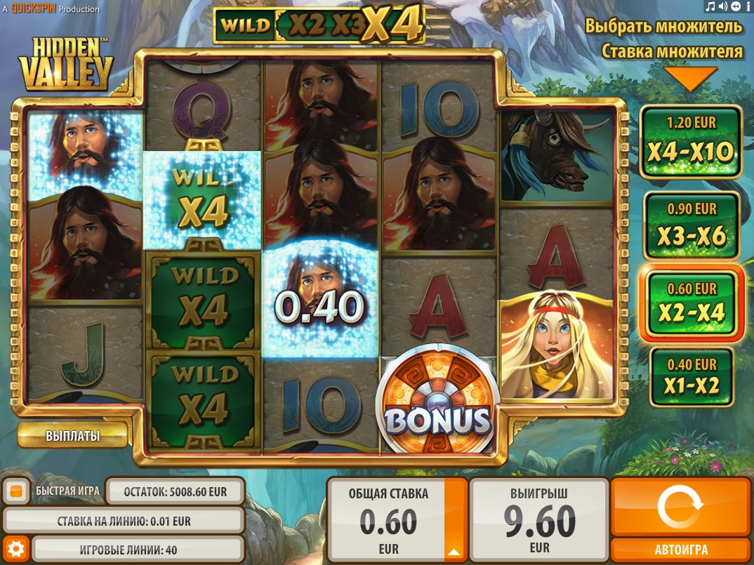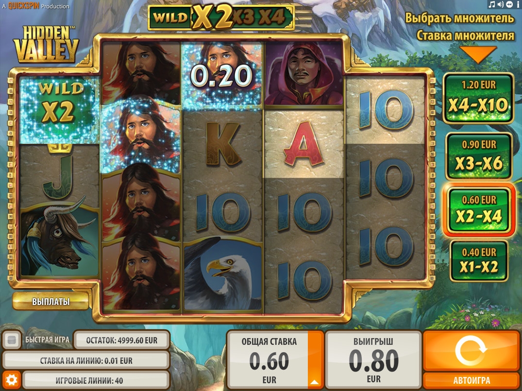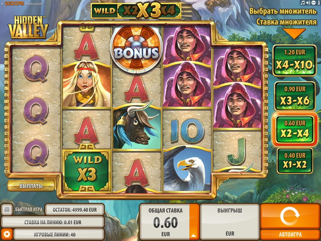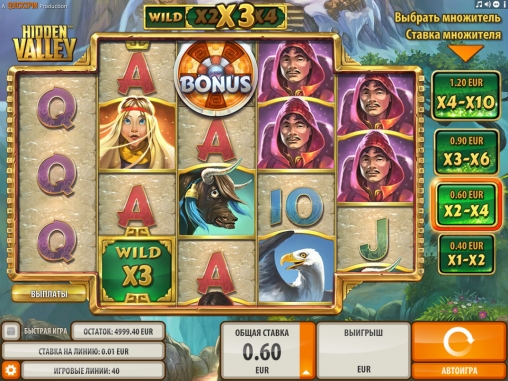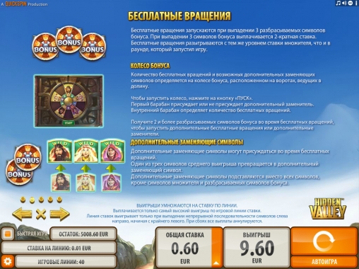 В слот-машине «Скрытая долина» есть символы разных типов, дополнительные множители, бесплатные вращения, бонусный раунд и другие функции.