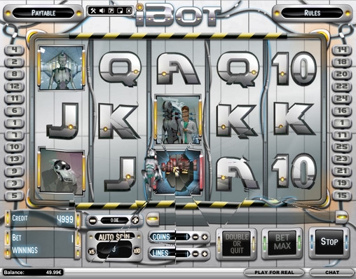 я кстате смотрел тот фильм по которуму разрабы сделали видео-слот iBot. Ну чтот общее по тематике угадывается ну а в целом всё как всегда. Стандартные для таких слотов двадцать пять линий, есть бонусный раунд