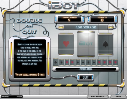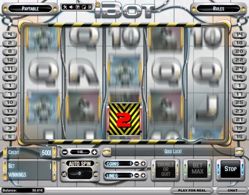 iBot – пятибарабанный игровой автомат от iSoftBet. В нем двадцать пять линий, количество которых пользователь устанавливает по своему желанию. Играть на видео-слоте iBot можно по ставке в одну – десять монет номиналом от одного до пятидесяти центов. На спин принимается до ста двадцати пяти евро.