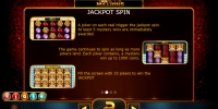Накопительный джекпот достается пользователю, который сможет таким образом заполнить все ячейки на экране джокерами. Но без выплаты не останется ни один клиент, так как на каждом этапе Jackpot Spin начисляется таинственный выигрыш в размере от 5 до 1000 монет.