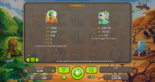 Мы имеем дело с пятибарабанной моделью, на которой можно играть лишь по двадцати пяти линиям. На экране одновременно появляются пятнадцать картинок (5х3).
