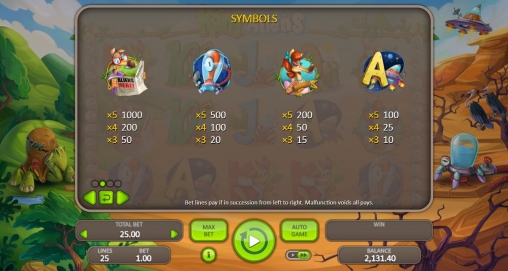 1. Wild (пришелец) составляет комбинации слева направо. Оплачивается даже один Wild в крайней колонке слева. Также он заменяет в цепочках другие простые картинки.