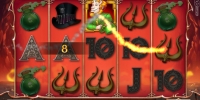 Картинки на экране соответствуют тематике автомата. Вы увидите номиналы карт, украшенные традиционными ирландскими орнаментами, бутылочку с ядом, трезубец, пентаграмму и черный цилиндр с черепом и костями.
