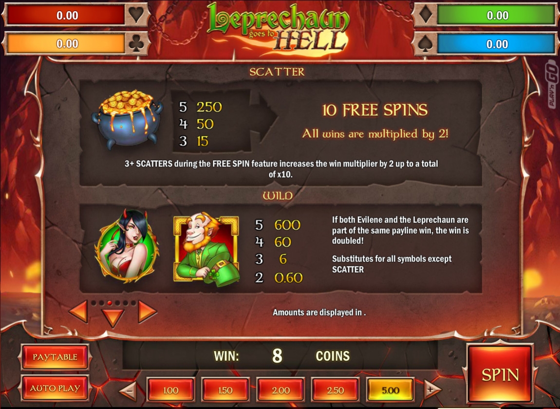 Игры на удвоение в Leprechaun Goes to Hell нет. О бонусах рассказывается далее в обзоре видео-слота.