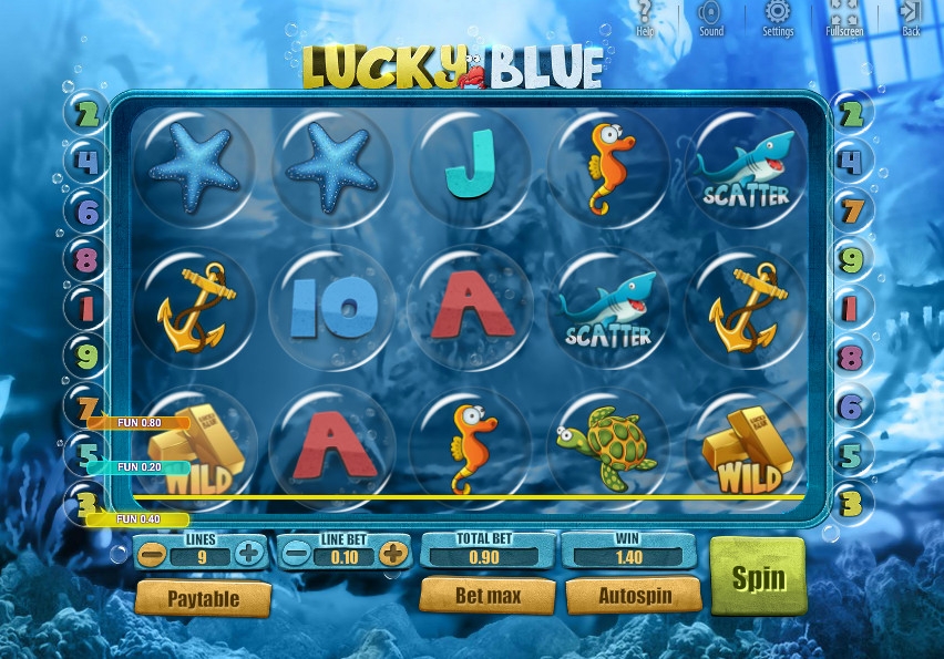 В Lucky Blue есть специальные символы, раунд призовых спинов, экстра-множители и другие опции. Риск-игры по шансам нет.