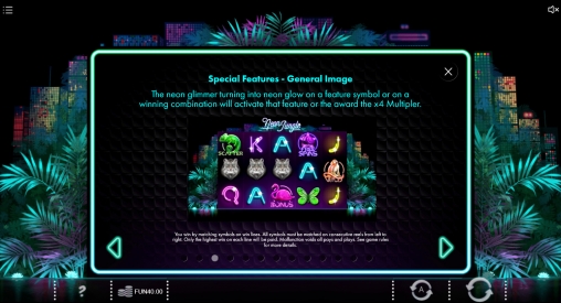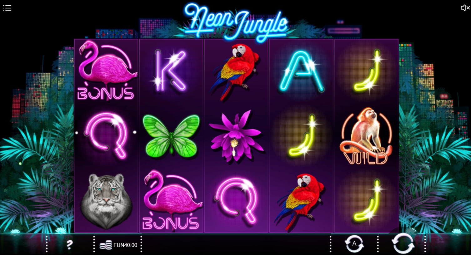 Регулировать в Neon Jungle можно способ отображения баланса, размер окна, звук и другие параметры. Открывается игровой автомат без скачивания в браузере. Доступна мобильная версия для смартфонов.