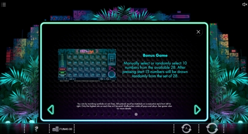 - Bonus Game – Вам предстоит сыграть в кено. Выберите десять номеров из двадцати восьми. Затем программа определит пятнадцать выигрышных чисел. Выплата гарантирована даже при отсутствии совпадений. Она может быть от пятидесяти монет до двадцати тысяч условных чипов.