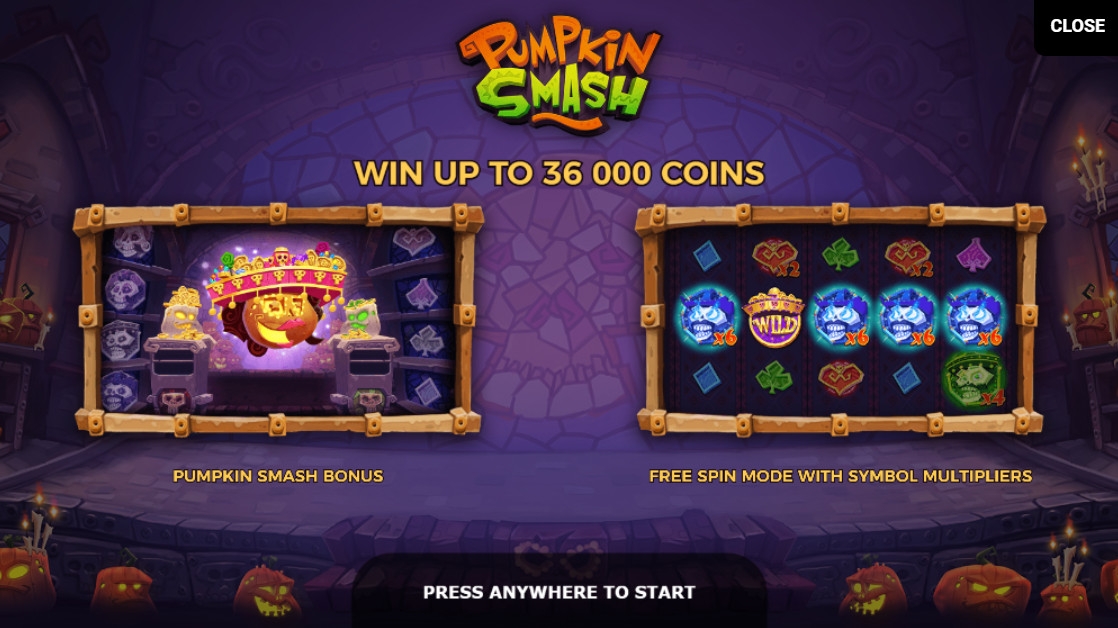 Pumpkin Smash – игровой аппарат с пятью барабанами, двадцатью полосами и пятнадцатью иконками на экране, выстраивающимися в три ряда.