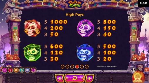 В таблице выплат есть подробное описание правил Pumpkin Smash Bonus Game.