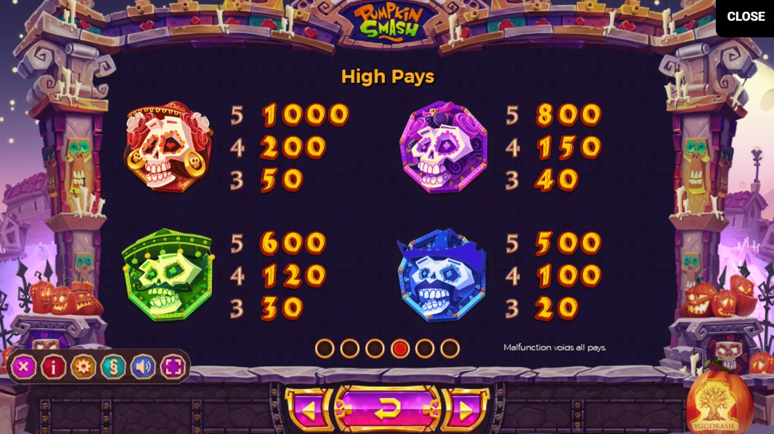 В Pumpkin Smash не предлагается накапливающийся джекпот Yggdrasil.