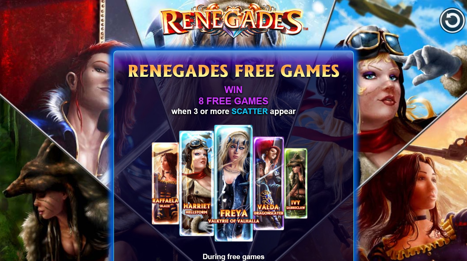 Компания NextGen Gaming представляет фэнтезийный видео-слот Renegades. Его героями стали пять девушек из разных эпох и миров. Их объединяет желание бороться за независимость, честь и славу. Это красочная игра с эффектной графикой, впечатляющей анимацией, необычным дизайном и массой других достоинств, о которых рассказывается в обзоре Casinoz.