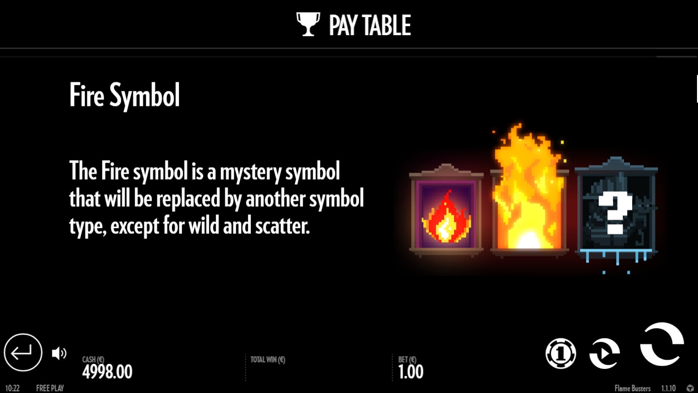 - Fire Symbol (языки пламени) является «таинственным» элементом, который может быть превращен в любую другую картинку, за исключением джокера или скаттера.
