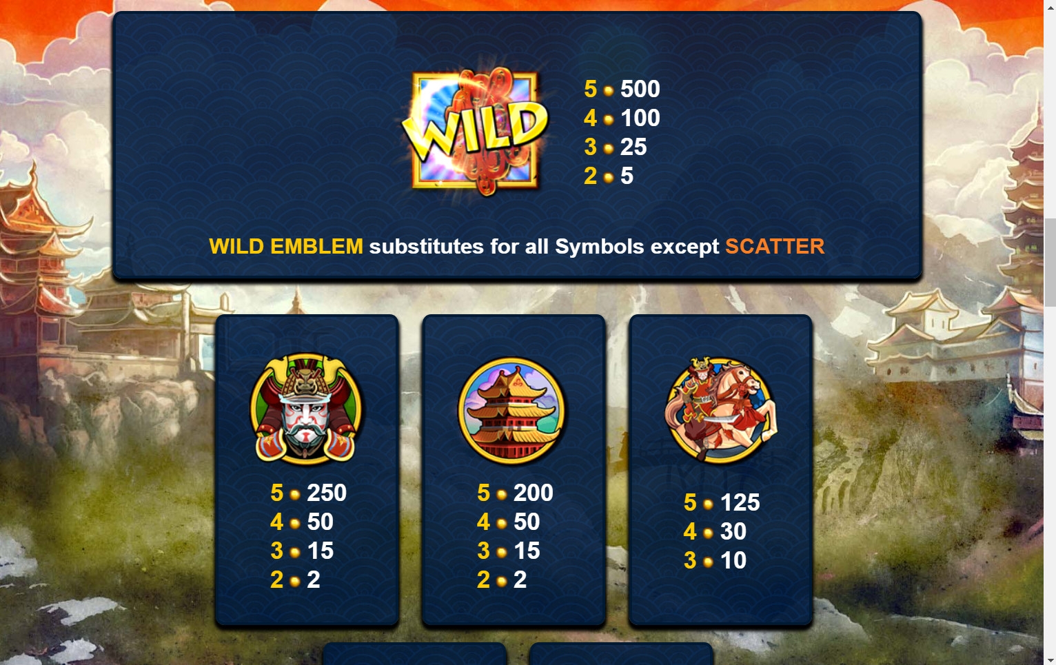 Очень яркий и красивый слот на тему Самураев! Отличный дизайн и звуковое сопровождение окунет вас в мир воинов самураев и игра затянет уже с первых минут. Рекомендую испытать этот отличный слот - не пожалеете!