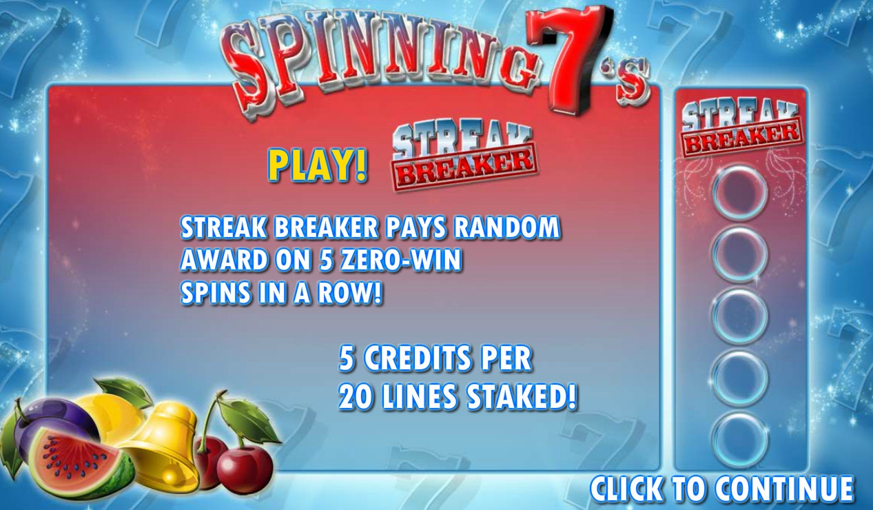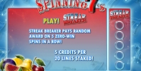 • Spinning 7’s не образует комбинации. Выпадая на экране, он превращается в одну из обычных картинок. Если при этом складывается цепочка, она оплачивается по установленному коэффициенту.