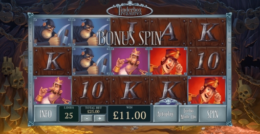 В Tinderbox Treasures пять барабанов и двадцать пять фиксированных полос. Иконки на барабанах выстраиваются в три ряда.