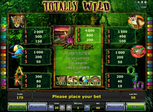 Totally Wild мало чем отличается от десятков однотипных моделей производства компании «Новоматик». Исключение составляют лишь фри-спины с несколькими дополнительными символами Wild.