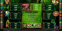 Free Games – Три, четыре или пять скаттеров начинают десять, пятнадцать или двадцать фри-спинов соответственно. В них не меняется ни ставка, ни количество активных линий. Игра ведется на средства онлайн-казино. В течение раунда леопард, обезьянка, тукан и лягушка становятся дополнительными джокерами.