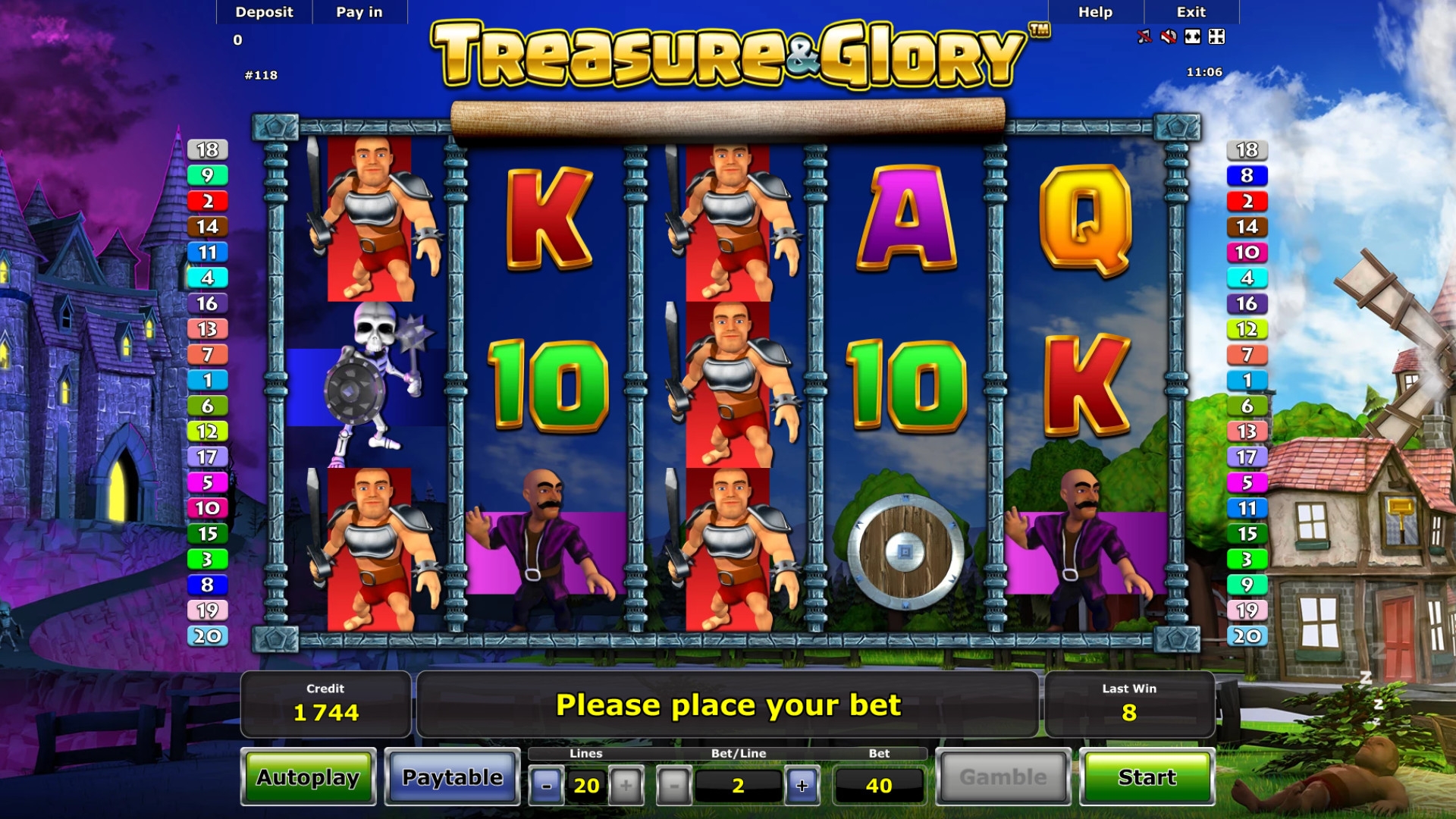 Рыцари, грабители, бродячие скелеты – такие персонажи населяют мир видео-слота Treasure and Glory. Его представляет на платформе Green Tube компания Novomatic. Чем еще, кроме разношерстной компании героев, интересна модель, вы узнаете из обзора Casinoz.