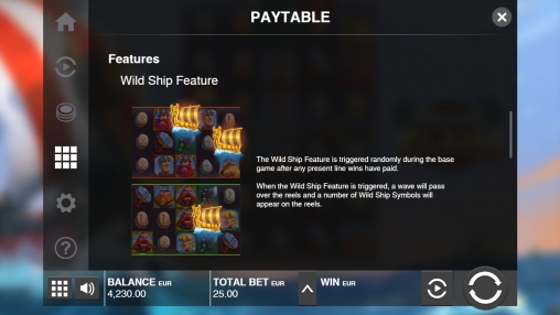 - Wild Ship Feature – Этот бонус может начаться в любом спине без дополнительных условий. По барабанам прокатывается волна, оставляющая за собой три корабля-джокера. Они помогают составлять комбинации, а затем смещаются на одну ячейку влево. Затем снова начисляются выплаты, и корабли продолжают путь в том же направлении. Процесс завершается, когда они исчезнут за пределами игрового поля.