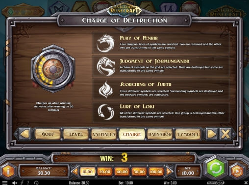 • Ragnarok – Если же в одном раунде будут задействованы сразу сорок картинок, вы будете участвовать в Charge of Destruction на еще более привлекательных условиях, включая дополнительные множители.